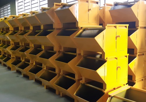 Carrinhos para coleta e armazenamento de reciclagem, desenvolvido para organizar o local de...